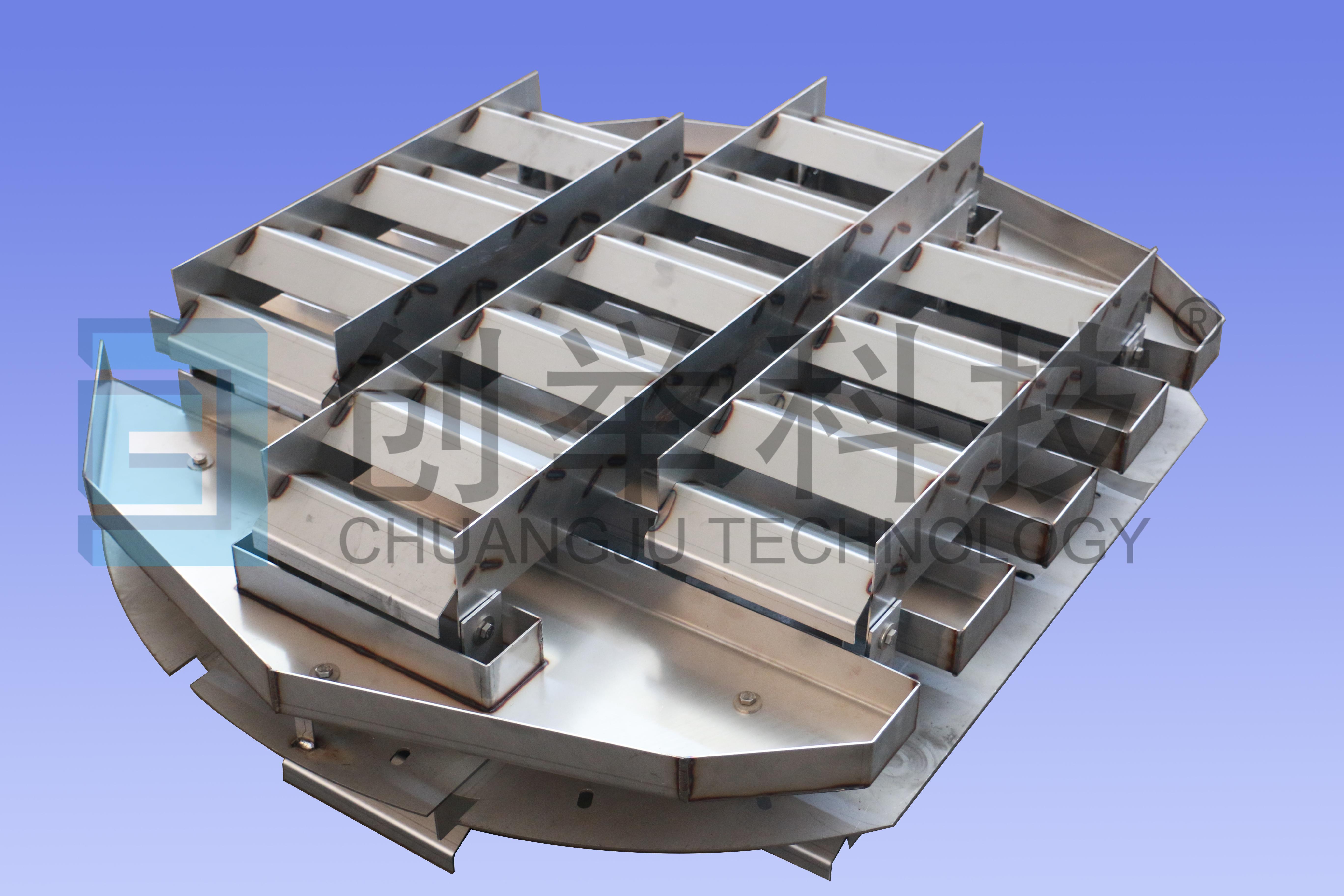 此再分布器同樣適用于易堵物系,與傳統再分布器相比不再設布液孔、溢流孔,從而使抗堵性能大幅度提升。