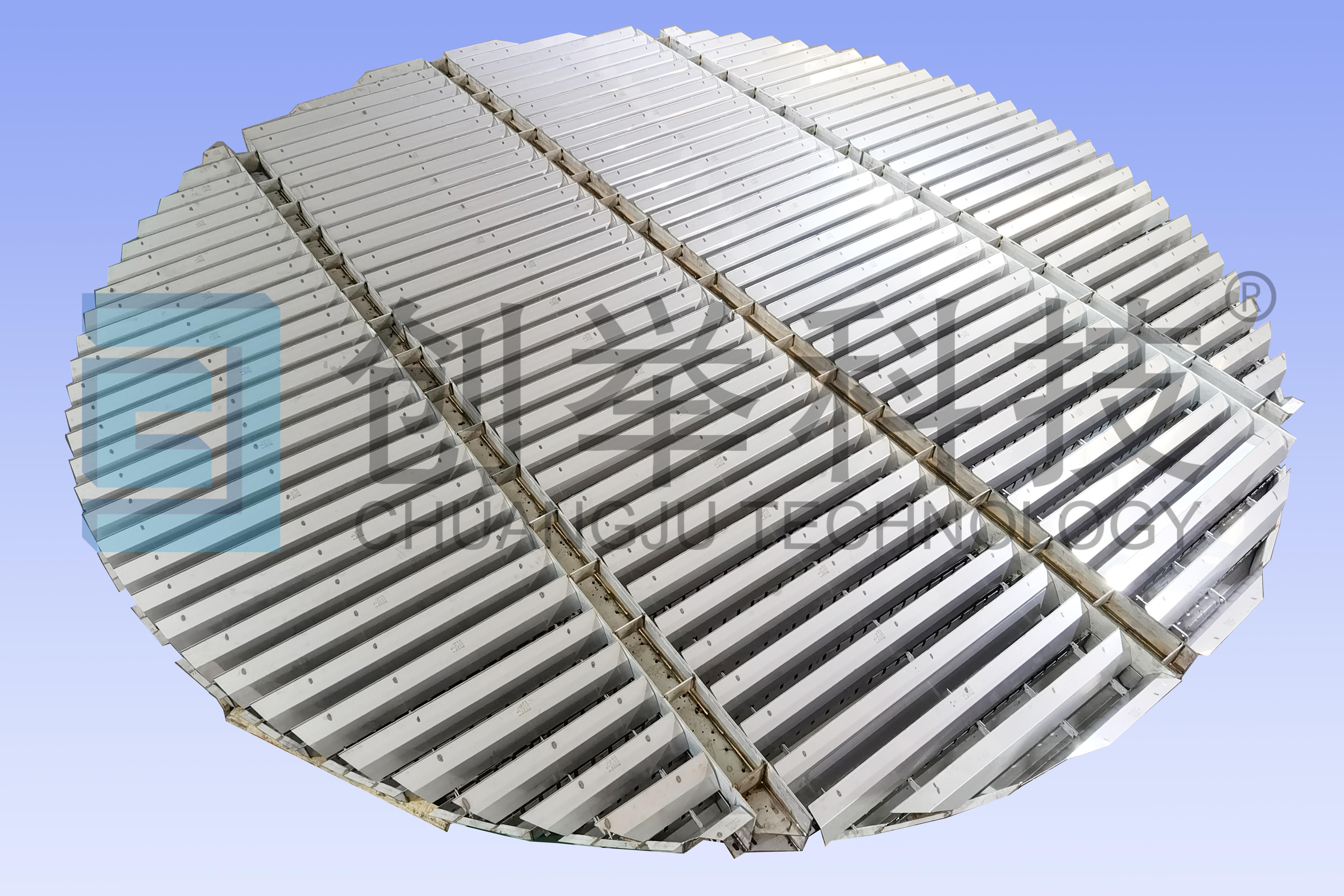 這種結構無(wú)易堵塞部件,該塔板抗堵塞能力更強。