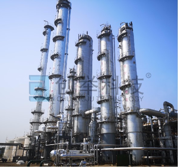 “五塔三效”甲醇精餾熱耦合工藝包技術(shù),原雙效精餾技術(shù)的延伸,主體設備增加一個(gè)加壓塔或負壓塔。是由前一個(gè)塔塔頂氣相作為后一個(gè)塔再沸器的熱源,比原雙效精餾技術(shù)多了一效,可進(jìn)一步節能。噸甲醇的蒸汽耗量可以由雙效的1.1~1.2降低到0.8~0.9,而且產(chǎn)品質(zhì)量高。該流程具有技術(shù)可靠、處理能力大、產(chǎn)品質(zhì)量高、噸甲醇蒸汽耗量低等優(yōu)點(diǎn)。特別適合于現有裝置的擴能改造。