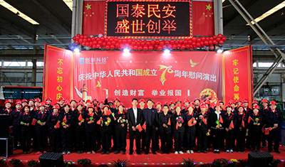 2019年10月12日為慶祝中華人民共和國成立70周年,天津市創(chuàng )舉科技股份有限公司(以下簡(jiǎn)稱(chēng)“創(chuàng )舉公司”)邀請紅楓藝術(shù)團舉辦“不忘初心、牢記使命”專(zhuān)場(chǎng)慰問(wèn)演出。創(chuàng )舉公司中高層領(lǐng)導及子公司一線(xiàn)生產(chǎn)員工近百人出席觀(guān)看。