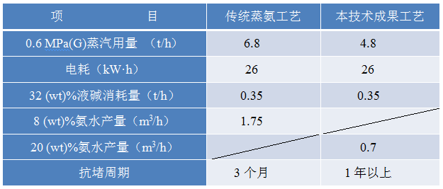 (4) 傳統蒸氨因堵塞問(wèn)題,需1-3個(gè)月進(jìn)行檢修,本技術(shù)成果設備每年只需檢修一次,節省檢修費用約4.5萬(wàn)元。
