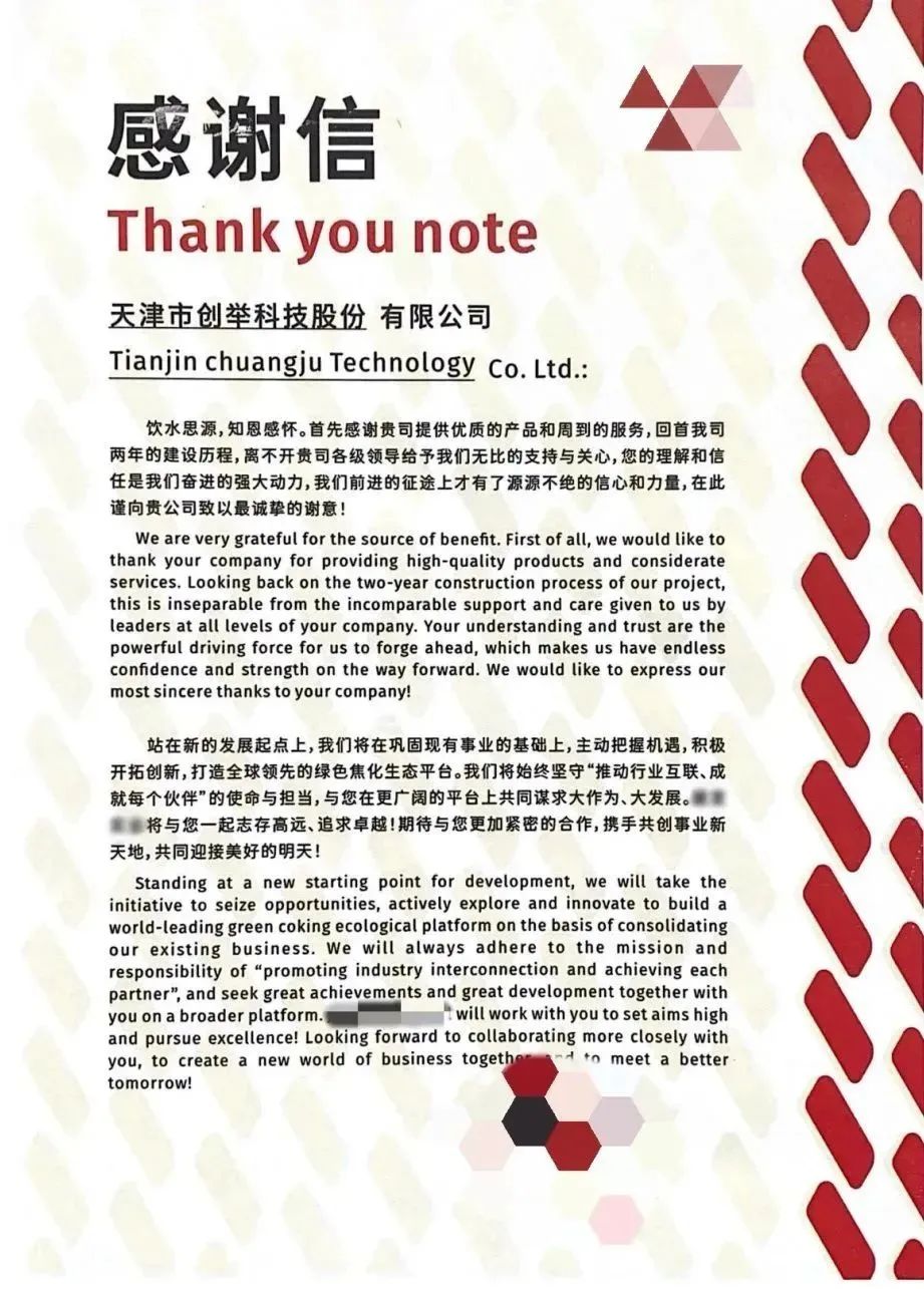 由天津市創(chuàng )舉科技股份有限公司(簡(jiǎn)稱(chēng)“創(chuàng )舉科技”)負責設計、制作山西省某新建205萬(wàn)噸/年焦化項目全負壓脫苯塔、脫酸蒸氨塔順利開(kāi)車(chē)成功。