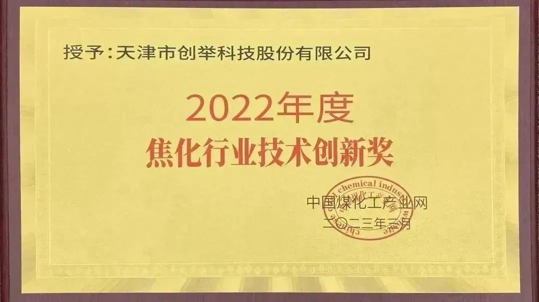 大會(huì )同期頒發(fā)2022年度焦化行業(yè)獎項及個(gè)人優(yōu)秀貢獻獎。創(chuàng )舉科技榮獲“2022年度焦化行業(yè)節能環(huán)保優(yōu)秀產(chǎn)品技術(shù)獎”、“2022年度焦化行業(yè)技術(shù)創(chuàng )新獎”兩項榮譽(yù)稱(chēng)號。