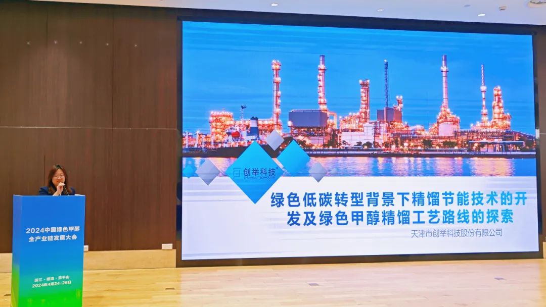 創(chuàng )舉科技應邀上臺發(fā)表以《綠色低碳轉型背景下精餾節能技術(shù)的開(kāi)發(fā)及綠色甲醇精餾工藝路線(xiàn)的探索》為主題的精彩演講。