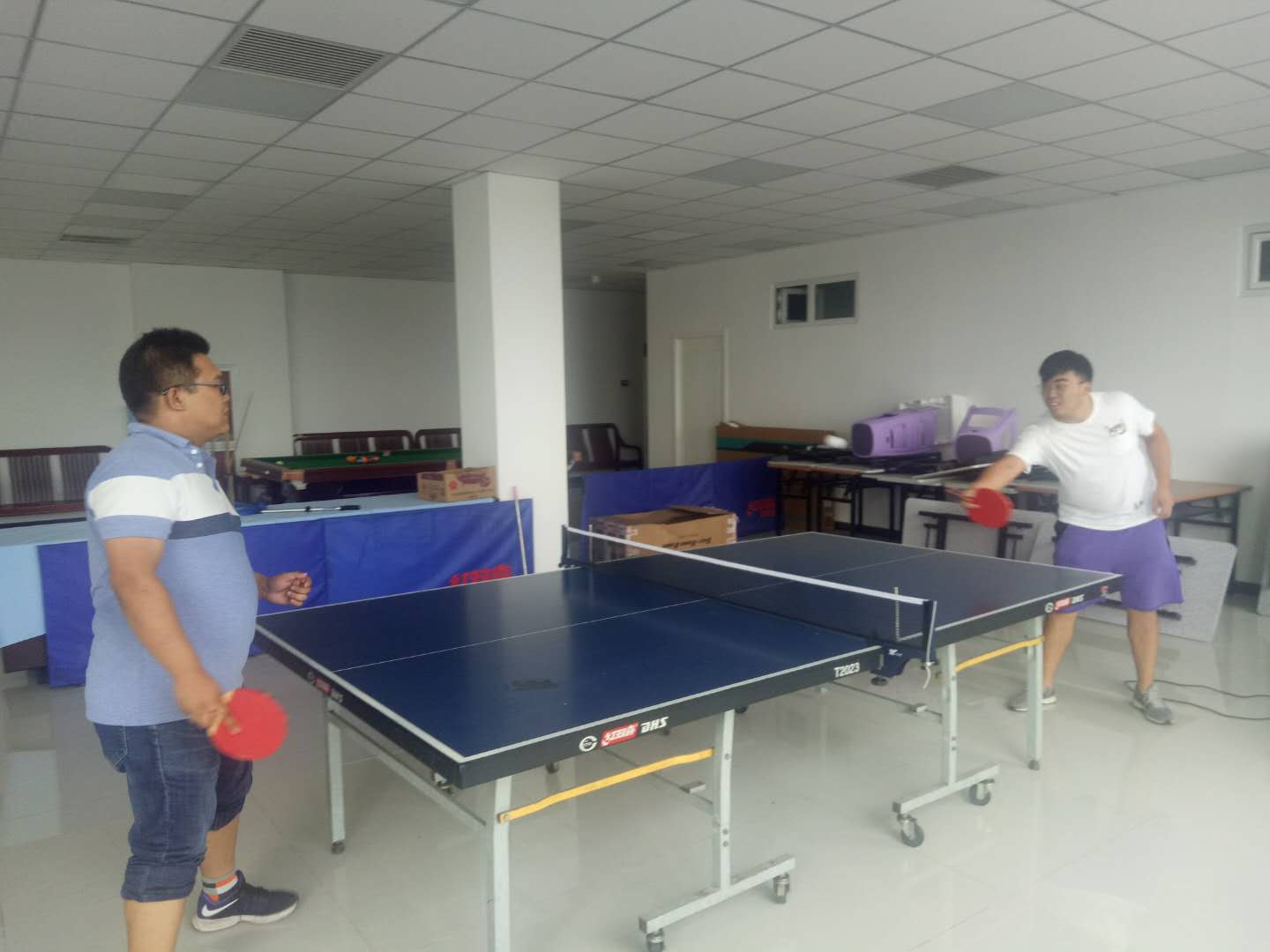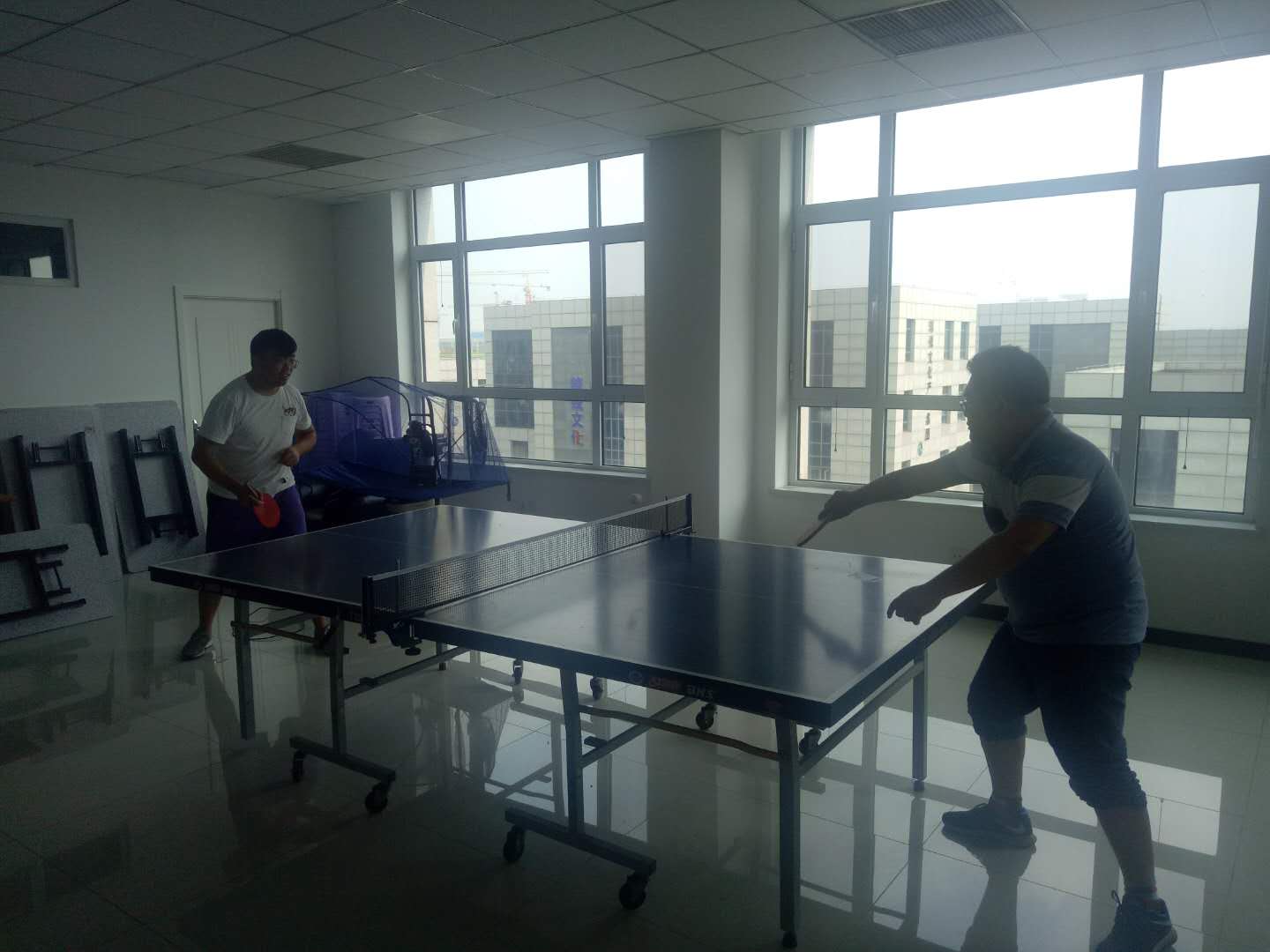 有的員工正在進(jìn)行單打,你來(lái)我擋,直拍、橫拍、扣球、旋轉球、弧線(xiàn)球,熱鬧非凡。大家不僅提升了球技,更鍛煉了身體。