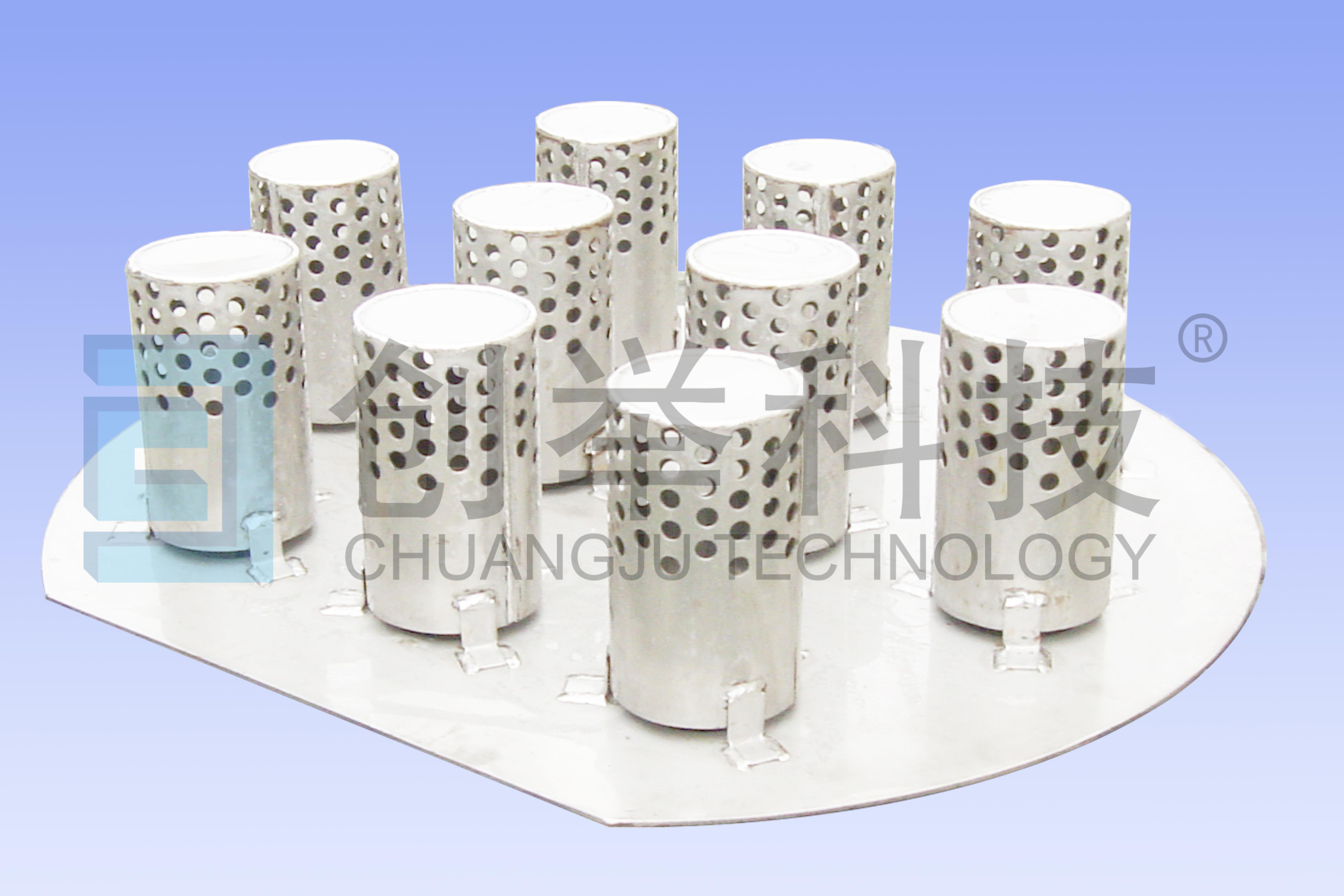Gesip公司的新型Highspeed塔板允許氣速高達30m/s,且不產(chǎn)生液體夾帶,而浮閥和泡罩塔板允許氣速為3m/s。該塔板上設置許多立式圓筒混合元件,元件下部為渦旋器(靜態(tài)混合器),可使高速流動(dòng)氣體形成強烈渦流并與液體快速混合,在汽液間達到非常高的接觸表面積。在元件上部,兩相通過(guò)旋風(fēng)分離器分離。由于該塔板效率非常高,因此對于相同處理量,采用該塔板的塔徑僅為采用常規泡罩塔板的1/2。其重量和總成本均為標準塔的1/5。