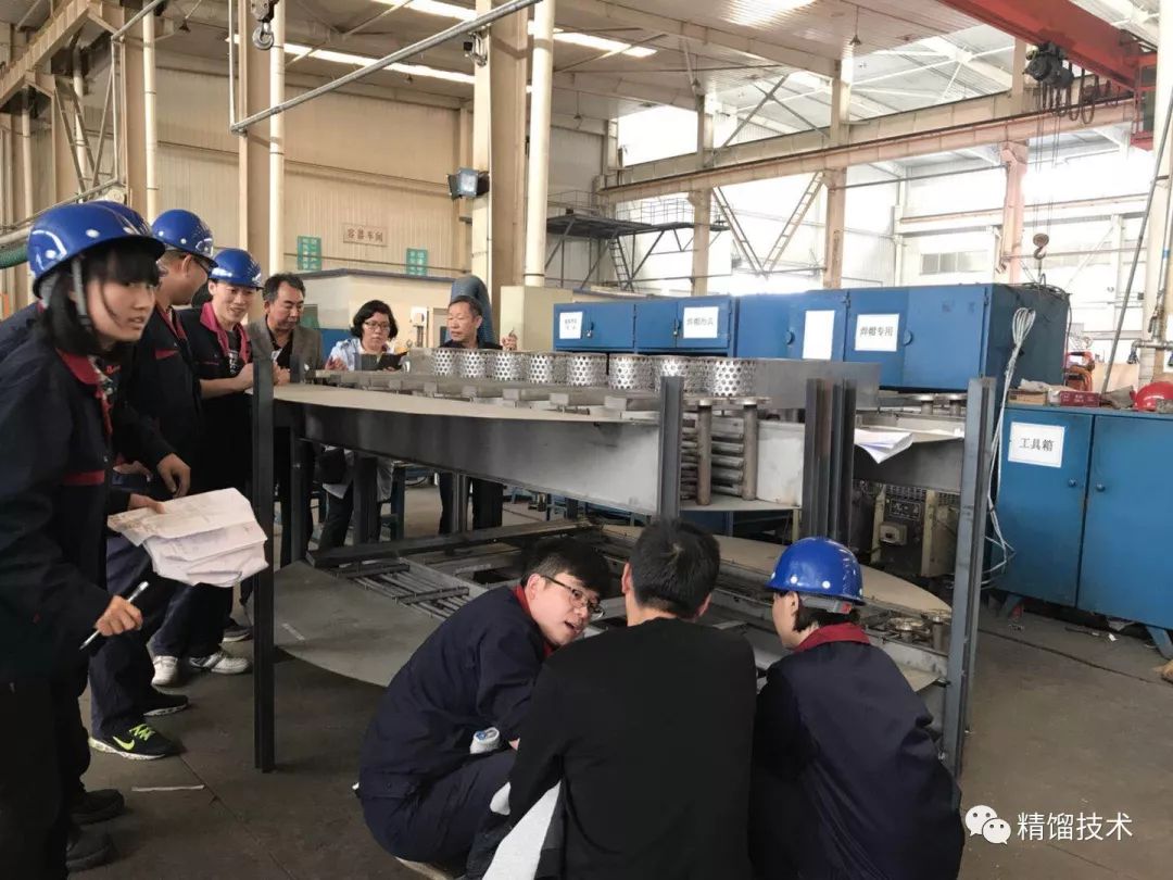 由于在實(shí)際生產(chǎn)中發(fā)現原塔盤(pán)壓降較高,故創(chuàng )舉公司本著(zhù)對客戶(hù)負責的態(tài)度集思廣益,重新對原復合移熱塔盤(pán)進(jìn)行改進(jìn),在實(shí)現高效傳質(zhì)和傳熱同時(shí)進(jìn)行的前提下,降低塔盤(pán)壓降。新塔盤(pán)設計完成后,為了提早發(fā)現在塔盤(pán)安裝過(guò)程中可能存在的問(wèn)題,設備廠(chǎng)預制兩層等比例的新塔盤(pán),邀請浙江瀚普一行領(lǐng)導來(lái)創(chuàng )舉設備廠(chǎng)進(jìn)行考察,公司董事長(cháng)王柱祥和常務(wù)副總商恩霞帶領(lǐng)工藝部、設備部、工程部相關(guān)技術(shù)人員同時(shí)陪同,及時(shí)發(fā)現新塔盤(pán)結構中的缺點(diǎn)并進(jìn)行優(yōu)化。充分體現了敬業(yè)、進(jìn)取、創(chuàng )新的創(chuàng )舉精神。