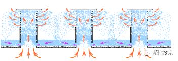 ③氣體和液滴上升碰撞分離板并折返,與上升的氣液激烈碰撞;