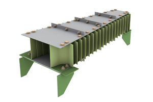 該分布器由一級槽和二級槽組成,一級槽置于二級槽上部,一級槽為矩形截面敞開(kāi)式結構,其接受進(jìn)料布液管的液體并對二級槽進(jìn)行初始液體分布。二級槽為全連通結構,窄槽的兩側設有垂直放置的長(cháng)條形布液板,槽體下部開(kāi)有多個(gè)布液孔,其結構設計可將液體線(xiàn)分布至填料頂端,分布效果優(yōu)于多點(diǎn)式分布器,各級分配槽具有水平調節機構,整體抗波動(dòng)能力強。同時(shí),該分布器可有效地降低分布器在塔內的空間需求,具有結構緊湊并且安裝簡(jiǎn)便的特點(diǎn)。