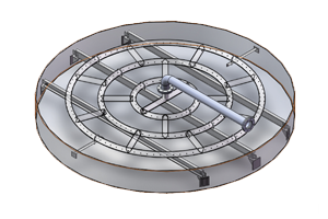 該分布器安裝在填料的段間,與槽式分布器的區別在于既能收集上段填料落下的液體,保證不漏液,而且通過(guò)對稱(chēng)式設計,使上升的氣體得到均勻的分布,該分布器的氣體阻力很小。同時(shí)該分布器又能將液體再次均勻分布。